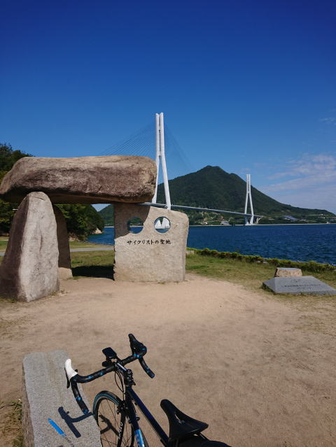 多々羅大橋を渡ると大三島の”サイクリストの聖地記念碑”
